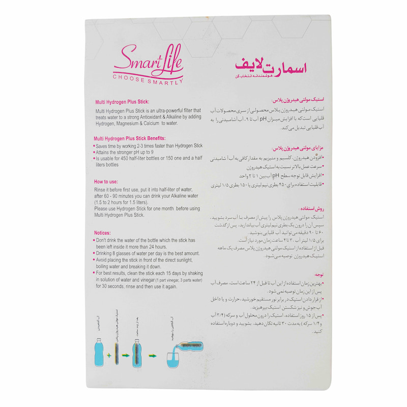 این محصول به عنوان یک مکمل غنی ساز آب آشامیدنی با افزودن مقادیر چشمگیری از یون هیدروژن ، تا 220 میلی گرم بر لیتر یون کلسیم ، 70 میلی گرم بر لیتر یون منیزیم به آب ، منجر به شکستن بافتهای چربی ، تنظیم سوخت و ساز بدن و در نتیجه کاهش وزن می گردد.