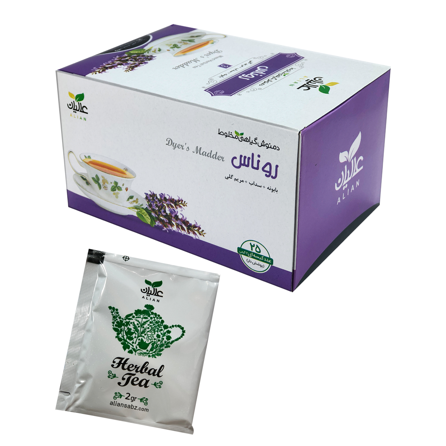 دمنوش ترکیبی روناس (قاعده آور) عالیان بسته 25 عددی