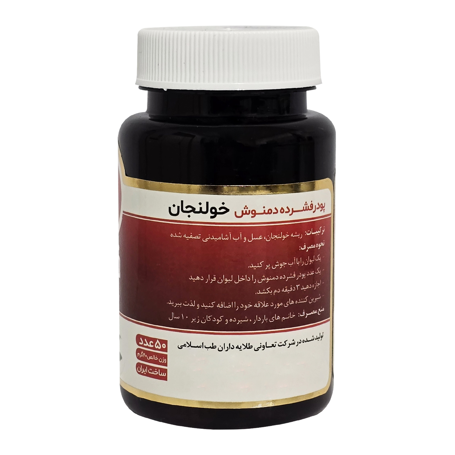 • نکته: قبل از نوشیدن، دمنوش فشرده خولنجان را هم بزنید تا عصاره و عسل موجود در آن کاملاً در آب حل شود.