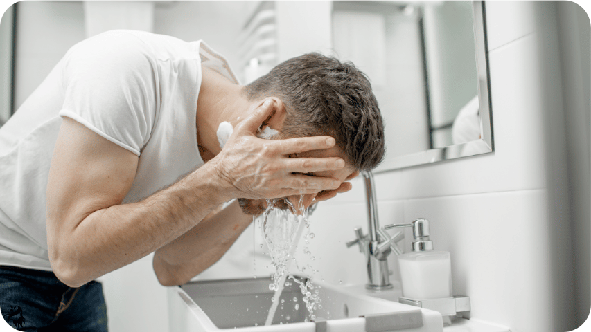 پوست را با آب ولرم یا خنک به‌خوبی آبکشی کنید تا اثری از کف یا صابون روی آن باقی نماند.